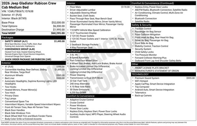 South Fork Chrysler Jeep Dodge Ram is proud to offer this terrific 2026 Jeep Gladiator in 41. This vehicle has passed our comprehensive inspection and comes with the following features: 2026 Gladiator Rubicon