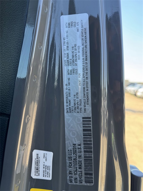 - VIN : 1C6JJTEG8LL202314