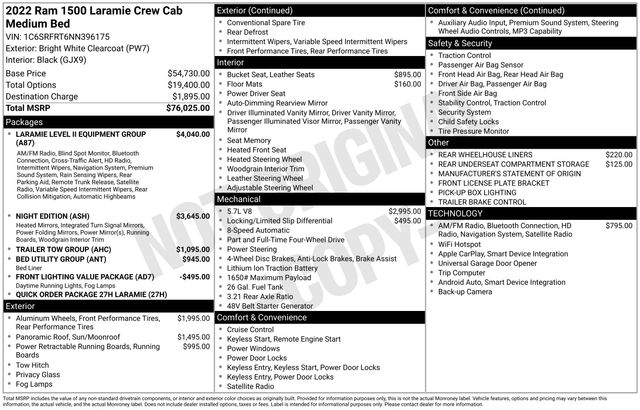 Elevate your driving experience with the Laramie Level II Equipment Group, which includes a host of premium features like remote tailgate release, auto high-beam headlamp control, and the exceptional harman/kardon 19-speaker premium sound system. The Night Edition further enhances the bold, commanding presence with blacked-out exterior accents, a sport performance hood, and sleek 22-inch forged aluminum wheels.